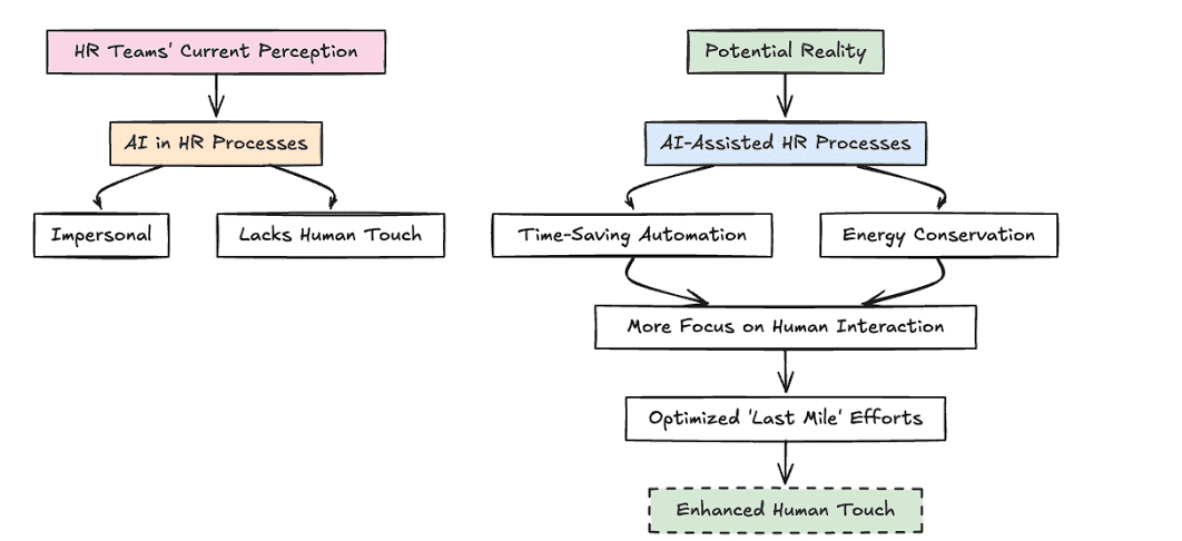 This ensures that while AI handles the groundwork, HR teams can focus on delivering personal, thoughtful, and emotionally intelligent interactions, which are what employees value most.