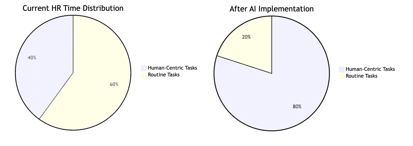 AI-powered chatbots and knowledge bases can manage these routine inquiries quickly and accurately, reducing the workload for HR while improving both efficiency and employee satisfaction. Over time, with further integration and optimization, AI can automate up to two-thirds of these tasks, enabling HR professionals to focus on higher-value work like strategic initiatives, employee development, and engagement.